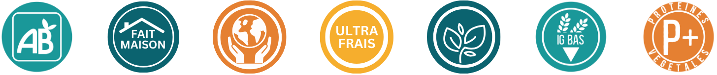 Nos aliments sont minutieusement choisis pour leur qualité nutritionnelle (indice glycémique bas, sources biologiques et végétales) et pour leur faible empreinte carbone.
