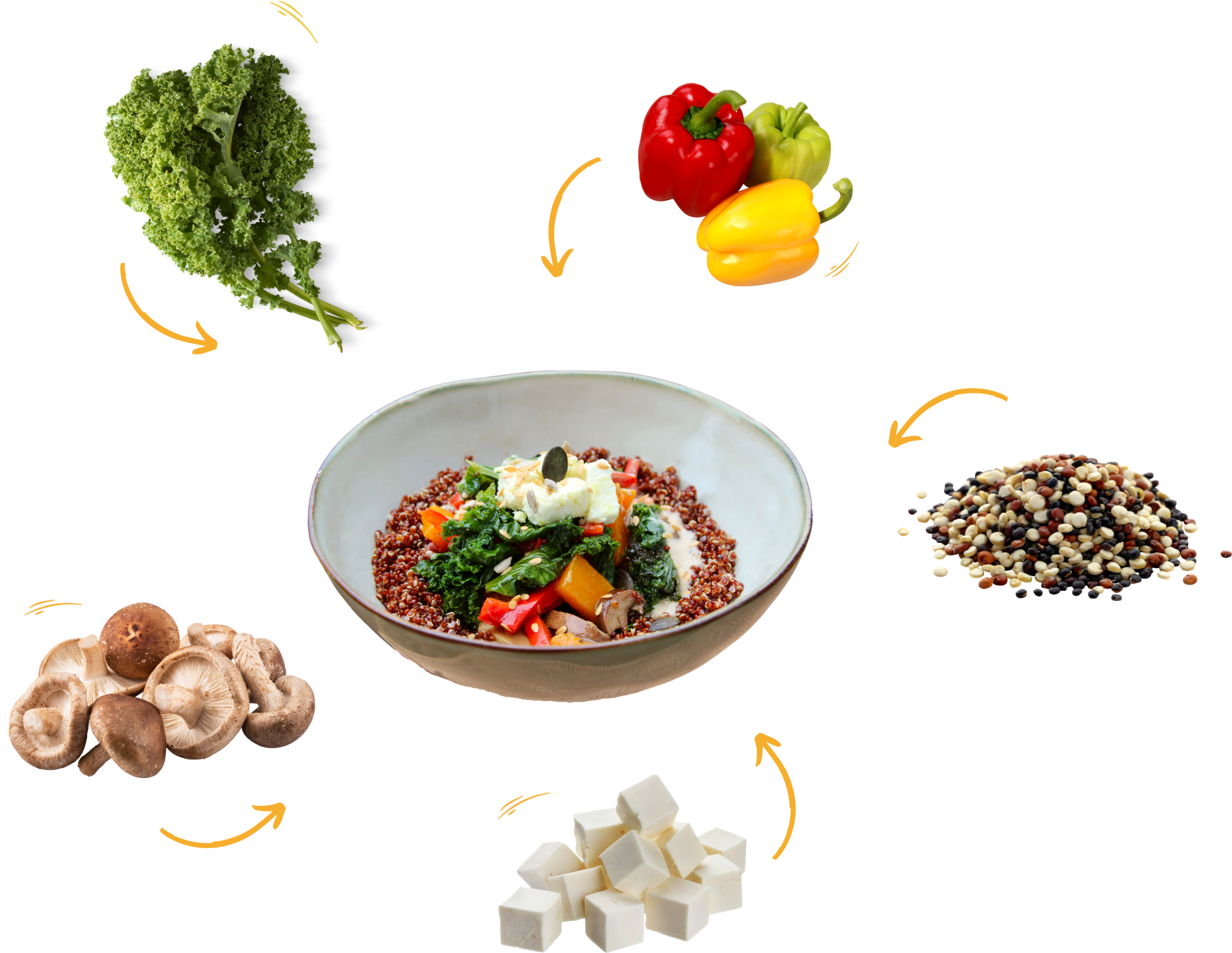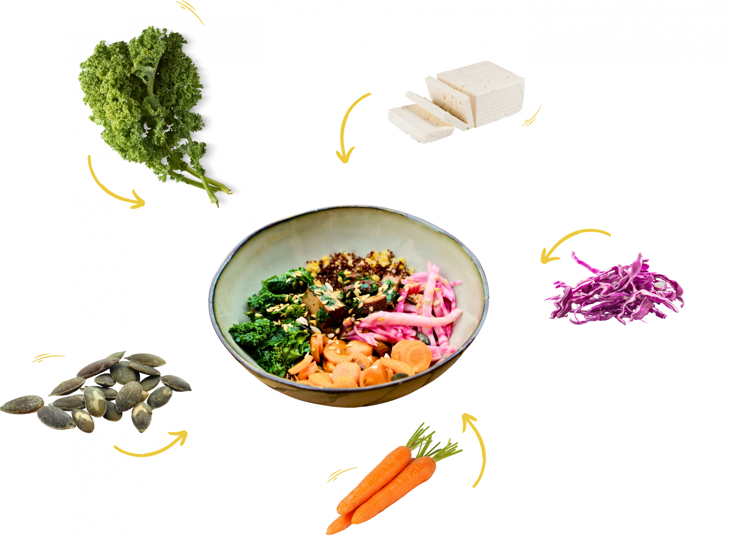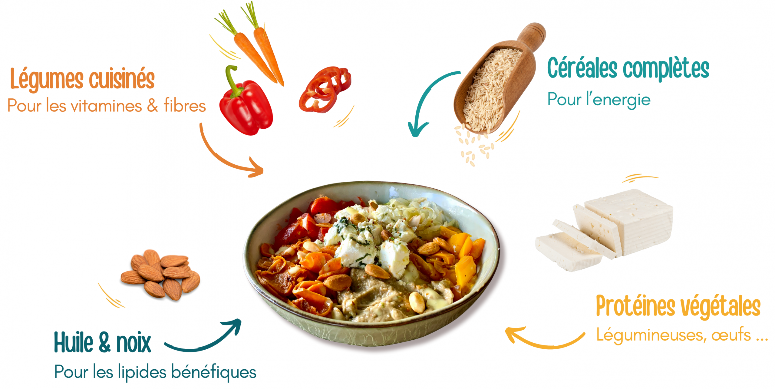 Nos trois bowls signatures 100% végétarien, bio et fait maison reprennent ces principes avec trois focus différents.